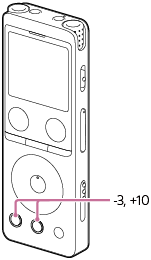С помощью функции Easy Search вы можете переходить вперед с шагом 10 секунд, или переходить назад с шагом 3 секунды в то время, как воспроизведение выполняется или находится в режиме ожидания. Вы можете сразу же проверить точки, которые не слышали, и пропустить ненужные точки, что полезно при изучении языка или ведении протокола совещания.