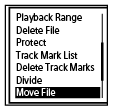 В то время как воспроизведение находится в режиме ожидания, выберите [Move File] в меню OPTION, а затем нажмите