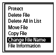В то время как воспроизведение находится в режиме ожидания, выберите [Change File Name] в меню OPTION, а затем нажмите