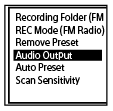 Во время прослушивания FM-радио или записи FM-радиовещания выберите [Audio Output] в меню OPTION, а затем нажмите
