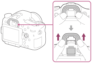 • برای برداشتن محافظ قطعه چشمی، طرف های چپ و راست آن را محکم نگه داشته و آن را بالا بکشید.