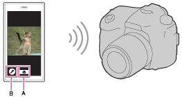 - کادربندی تصویر را روی صفحه تلفن هوشمند بازبینی نموده، و سپس دکمه شاتر (A) روی تلفن هوشمند را برای گرفتن یک تصویر فشار دهید.