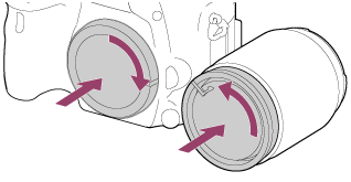 1. به فشار دادن دکمه آزاد سازی لنز (A) ادامه داده و لنز را در جهت فلش بچرخانید تا متوقف شود.