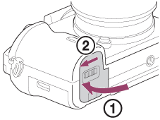 เลื่อนก้านเปิดเพื่อเปิดฝาปิดแบตเตอรี่