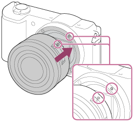 توسط همراستا کردن دو علامت شاخص سفید رنگ (شاخص های نصب) روی لنز و دوربین لنز را نصب کنید.