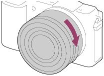 - در حالی که لنز را به آرامی به طرف دوربین فشار می دهید، لنز را به آهستگی در جهت فلش بچرخانید تا در موقعیت قفل شده کلیک کند.