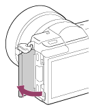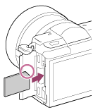 • Paina muistikorttia paikalleen lovettu kulma kuvan mukaisessa suunnassa, kunnes se napsahtaa paikalleen.