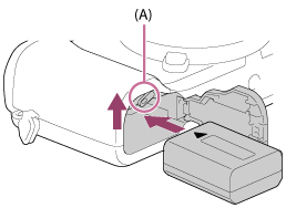 - Aseta akku samalla, kun painat lukitusvipua (A) akun kärjellä, kunnes akku lukittuu paikalleen.