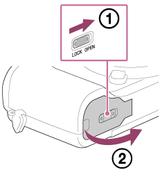 - Otvorte kryt akumulátora posunutím prvku na otvorenie krytu.