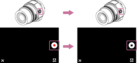 - Tik op de knop om te schakelen tussen stilstaande beelden / films (A) om de filmstand te activeren.