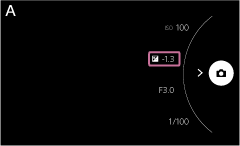 ILCE-QX1: u kunt de belichting handmatig aanpassen binnen een bereik van -3,0 EV tot +3,0 EV.