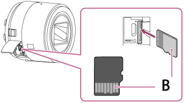 - Open het deksel en plaats een microSD-geheugenkaart of een Memory Stick Micro (M2).