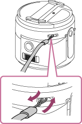 Instale a correia e passe a mão pelo laço para evitar que a câmara caia e fique danificada.