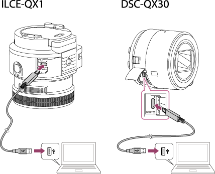 - 如果照相機連接到並未連接電源的膝上型電腦,則膝上型電腦的電池電量會下降。充電時間請勿過長。