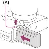 - Indsæt batteriet, mens du trykker på låsemekanismen (A) med spidsen af batteriet, indtil batteriet låses på plads.