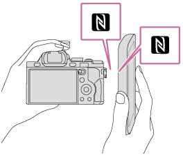 - Berør produktet med smartphonen i 1-2 sekunder, indtil PlayMemories Mobile starter.