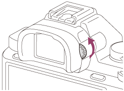 Brug dioptriskalaen til at justere til dit syn, indtil visningen står helt klar i søgeren.Hvis det er svært at dreje dioptri-justeringsknappen, skal øjestykkedelen tages af, hvorefter knappen justeres.