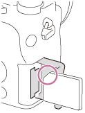 - Indsæt hukommelseskortet med det afskårne hjørne vendt i den viste retning, indtil det klikker på plads.