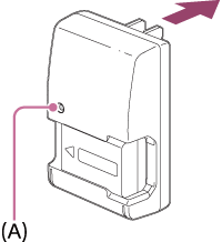 - Ha a teljesen új akkumulátoregységet használ, vagy ha a használt akkumulátoregységet előtte hosszabb ideig nem használták, az akkumulátor töltésekor a CHARGE lámpa gyorsan villoghat. Ilyen esetben vegye ki az akkumulátoregységet a töltőből, majd az újratöltéshez helyezze vissza.