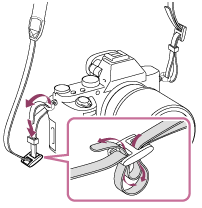 - Rögzítse a pánt mindkét végét a fényképezőgépre.