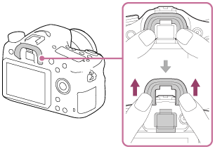 - Para retirar la caperuza de ocular, agárrela por los lados izquierdo y derecho y levántela.