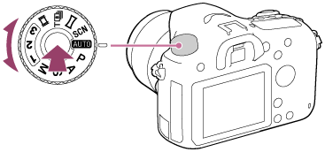 - Gire el dial de modo mientras pulsa el botón de liberación del bloqueo del dial de modo del centro del dial de modo.