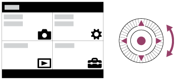 Seleccione el elemento de MENU deseado utilizando el lado superior/inferior/izquierdo/derecho de la rueda de control o girando la rueda de control, y después pulse