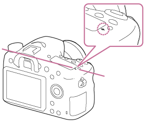 mostra la posizione del sensore dell’immagine*. Quando si misura la distanza esatta tra il prodotto e il soggetto, fare riferimento alla posizione della linea orizzontale.