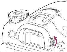 Regolare la scala diottrica secondo la propria vista finché il display non appare nitidamente nel mirino.Se è difficile girare la manopola di regolazione diottrica, rimuovere la conchiglia oculare e poi regolare la manopola.