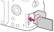 - Расположив карту памяти с зазубренным углом так, как показано на рисунке, вставьте ее до щелчка.