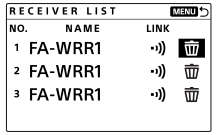 (حذف) من أجل مُستقبل الراديو اللاسلكي المراد إلغاء اقترانه، ومن ثم اضغط زر المنتصف. عندما تضبط المؤشر، سيومض المصباح LINK على مُستقبل الراديو اللاسلكي المقابل.
