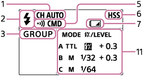 Коли виріб перебуває у режимі бездротового спалаху, на екрані відображається позначка