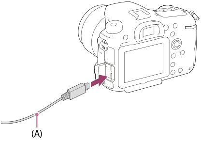 (Asetus) on [Massamuisti]. - Liitä kamera tietokoneeseen käyttämällä micro USB -kaapelia (mukana) (A).