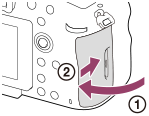 Nyissa fel a memóriakártya-fedelet, és győződjön meg arról, hogy a memóriaműködés-jelző (A) nem világít, majd az eltávolításhoz nyomja be finoman egy mozdulattal a memóriakártyát.