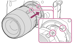 - Monter objektivet ved å rette inn de to oransje indeksmerkene (monteringsindekser) på objektivet og kameraet.