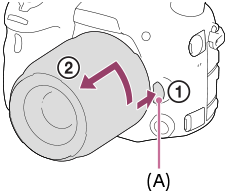 Fortsett å holde inne utløserknappen for objektivet (A) og drei objektivet i pilretningen til det stopper.
