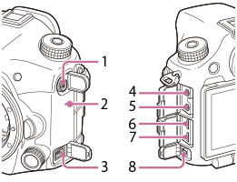 (Mikrofonkontakt)- Når det kobles til en ekstern mikrofon, slår mikrofonen seg av automatisk. Er den eksterne mikrofonen av typen "plug-in-power", får mikrofonen strøm fra kameraet.