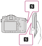 - Dette merket markerer berøringspunktet for tilkobling av kameraet og en NFC-aktivert smarttelefon.