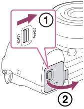 - افتح غطاء البطارية/بطاقة الذاكرة.