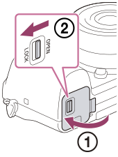 Åbn hukommelseskortdækslet og sikr dig, at aktivitetslampen (A) ikke lyser, og tryk derefter én gang forsigtigt ind på hukommelseskortet for at fjerne det.