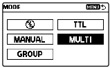 Tryk på MODE-knappen for at få vist skærmen til indstilling af blitztilstanden, og vælg derefter [MULTI].