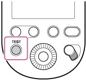 HVL-F60RM2: Når batterierne løber tør for strøm, vises der ikke bare en advarsel for batteristrømmen på LCD-panelet, men TEST-knappen bag på denne blitzenhed blinker orange. Illustrationen anvendt nedenfor er af HVL-F60RM2-blitzenheden.