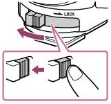 Sluk først for strømmen på blitzenheden. Tryk og hold på frigørelsesknappen, drej låsegrebet væk fra "LOCK" og skub derefter enheden ud af multi-interfaceskoen.