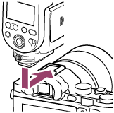 Sæt multi-interfacefoden på blitzenheden ind i multi-interfaceskoen på kameraet, og tryk foden helt ind.