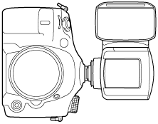 Når blitzrøret vippes sidelæns med 90 ° i en af retningerne for blitzfotografering, og kameraet er placeret i portrætretningen, kan de fotograferede billeder muligvis se mørkere ud foroven og forneden. I sådan et tilfælde kan du anvende det indbyggede vidvinkelpanel eller vippe blitzrøret tilbage til den oprejste position.