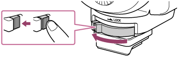 Tryk og hold på frigørelsesknappen og drej låsegrebet væk fra "LOCK".