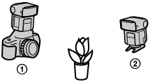 Atașați o altă unitate bliț cu același model sau o unitate de comandă radio fără fir specificată ca unitate de comandă ([CMD] este selectat) la cameră.