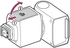 HVL-F46RM/HVL-F46RMA: Deschide prin glisare ușa compartimentului de baterii (