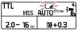 Po zapnutí jednotky blesku sa na LCD paneli zobrazia indikátory.