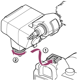 Desligue a corrente da câmara, rode o controlo de bloqueio no sentido contrário ao dos ponteiros do relógio até ao máximo e, em seguida, deslize o Pé Multi-Interface para fora da sapata.
